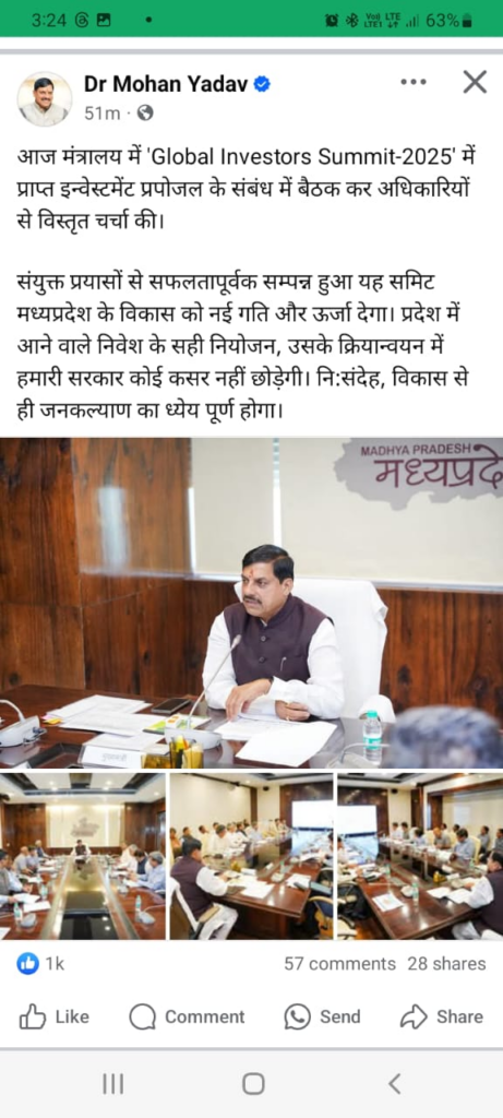 भोपाल l आज मंत्रालय में ‘Global Investors Summit-2025’ में प्राप्त इन्वेस्टमेंट प्रपोजल के संबंध में बैठक कर सीएम डॉ मोहन यादव ने अधिकारियों से विस्तृत चर्चा की