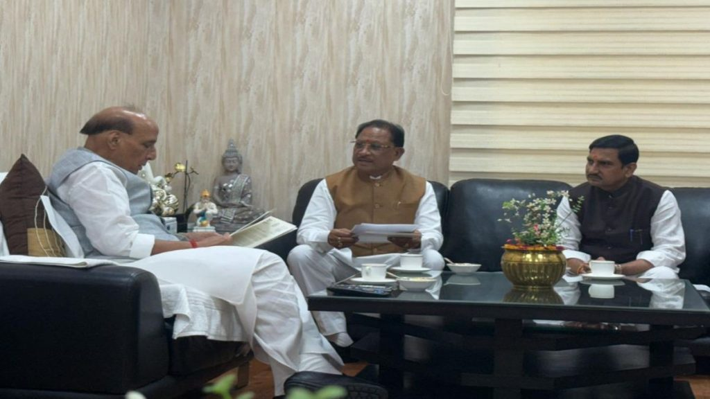 छत्तीसगढ़ के मुख्यमंत्री विष्णुदेव साय ने दिल्ली में केंद्रीय रक्षा मंत्री राजनाथ सिंह से मुलाकात की; बैठक में बिलासा देवी केवट (चकरभाठा) एयरपोर्ट के विस्तारीकरण और उससे जुड़ी ज़मीन-हस्तांतरण संबंधी मामले उठाए गए। बैठक में केंद्रीय राज्य मंत्री (आवास व शहरी कार्य) व बिलासपुर सांसद तोखन साहू भी मौजूद रहे।