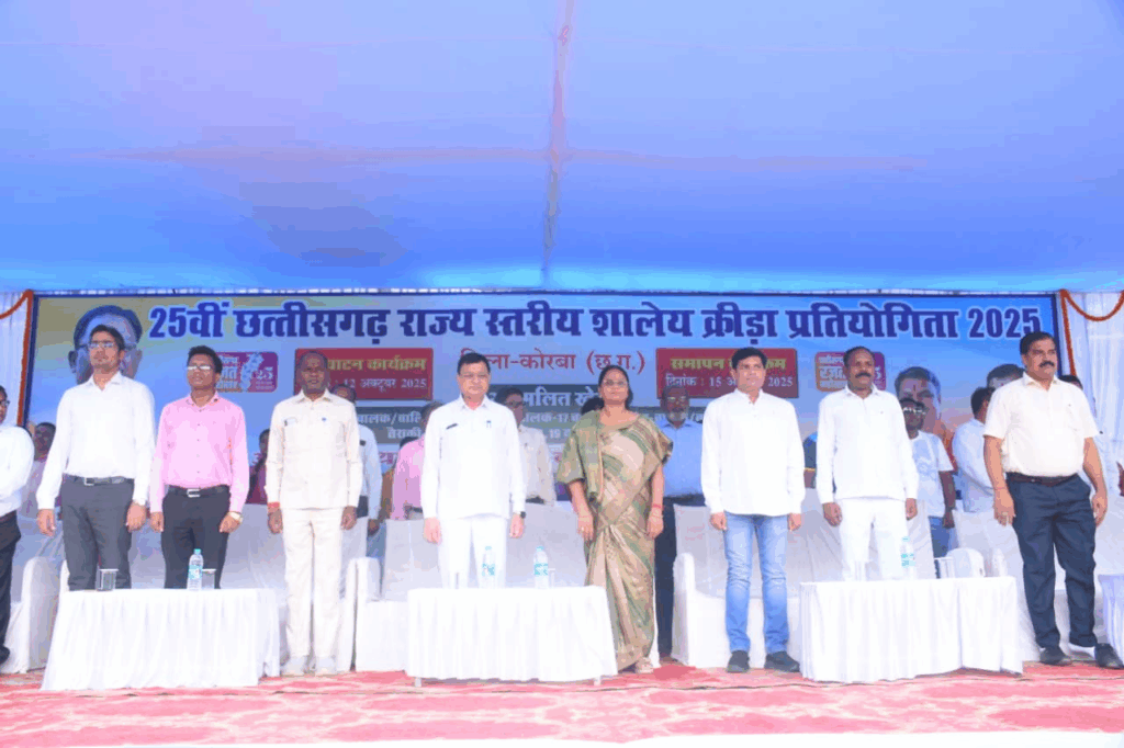छत्तीसगढ़ के उर्जाधानी कोरबा के सीएसईबी फुटबॉल ग्राउंड में प्रदेश सरकार के वाणिज्य, उद्योग व श्रम मंत्री श्री लखन लाल देवांगन द्वारा दीप प्रज्वलित कर 25वीं राज्य स्तरीय शालेय खेल प्रतियोगिता का शुभारंभ किया गया। इस दौरान कटघोरा विधायक श्री प्रेमचंद पटेल, नगर पालिक निगम महापौर कोरबा श्रीमती संजूदेवी राजपूत, सभापति श्री नूतन सिंह ठाकुर सहित अन्य जनप्रतिनिधि एवं अधिकारी उपस्थित थे।