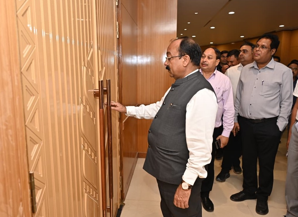 उप मुख्यमंत्री तथा लोक निर्माण मंत्री श्री अरुण साव ने आज नवा रायपुर में निर्माणाधीन छत्तीसगढ़ विधानसभा के नए भवन के अंतिम दौर के कार्यों का निरीक्षण किया। उन्होंने इस दौरान इसके लोकार्पण की तैयारियों का भी जायजा लिया। प्रधानमंत्री श्री नरेन्द्र मोदी आगामी 1 नवम्बर को राज्योत्सव के मौके पर विधानसभा के नए भवन का लोकार्पण करेंगे। आधुनिक व सर्वसुविधायुक्त इस भवन में छत्तीसगढ़ की संस्कृति और परंपरा की झलक दिखाई देगी। विधानसभा के सदन की सीलिंग में धान की बालियां उकेरी गई हैं। सदन के भीतर के ज्यादातर फर्नीचर बस्तर के शिल्पियों द्वारा बनाए गए हैं।