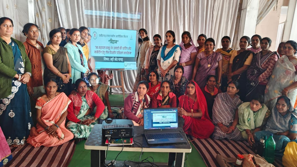इस अवसर पर जिला कार्यक्रम प्रबंधक (आजीविका) श्री अनुराग मिश्रा ने समूह सदस्यों को उद्यम आधार पंजीयन, FSSAI पंजीयन, गुणवत्ता मानक, विधिक प्रक्रियाएं, मूल्य निर्धारण, लागत विश्लेषण तथा बाजार से सीधा जुड़ाव जैसे महत्वपूर्ण विषयों पर विस्तार से मार्गदर्शन दिया। उन्होंने बताया कि आवश्यक पंजीकरण एवं मानकों का पालन करने से स्व-सहायता समूहों के उत्पाद न केवल स्थानीय बल्कि राज्य एवं राष्ट्रीय स्तर के बाजारों तक भी पहुंच बना सकते हैं। इससे समूह सदस्यों की आय में स्थायी वृद्धि के साथ-साथ रोजगार के नए अवसर भी सृजित होंगे।
